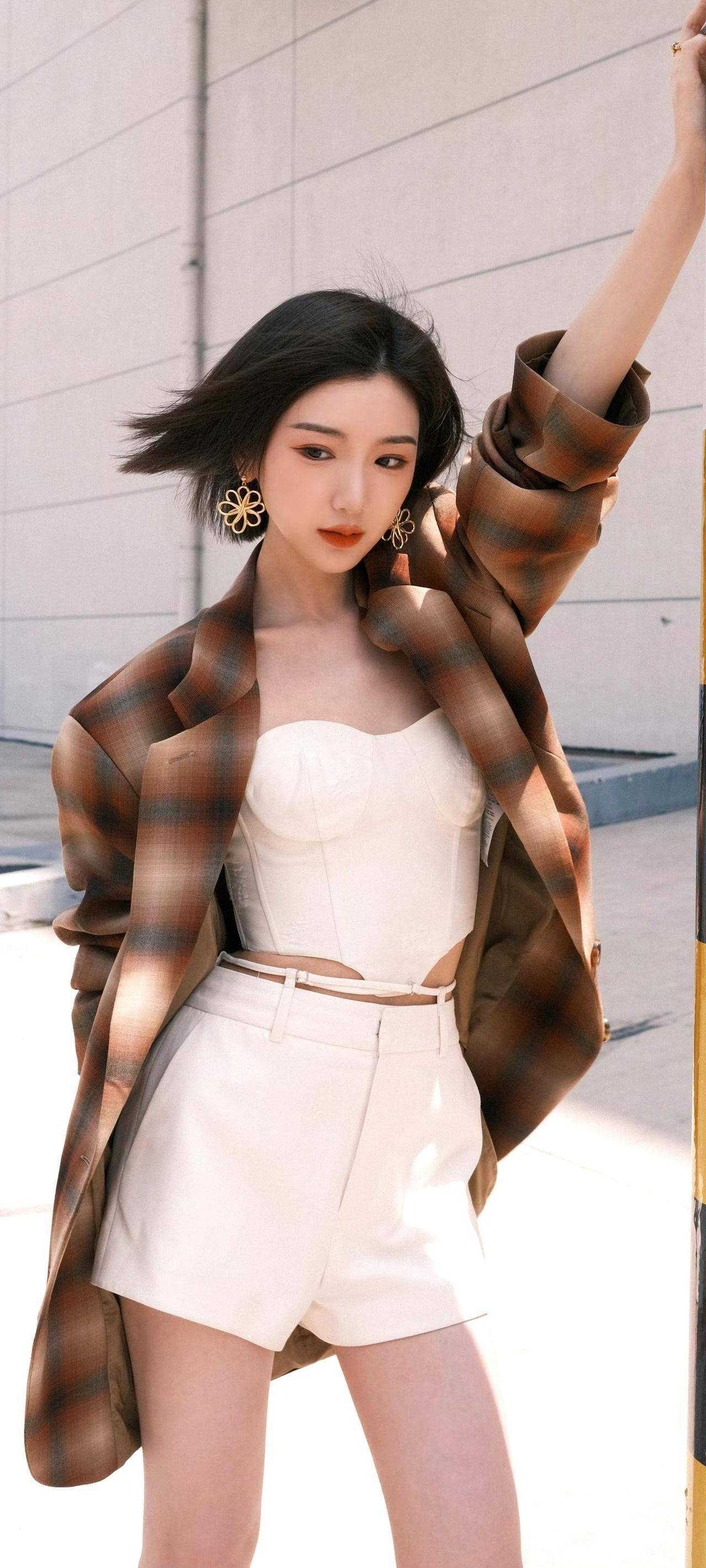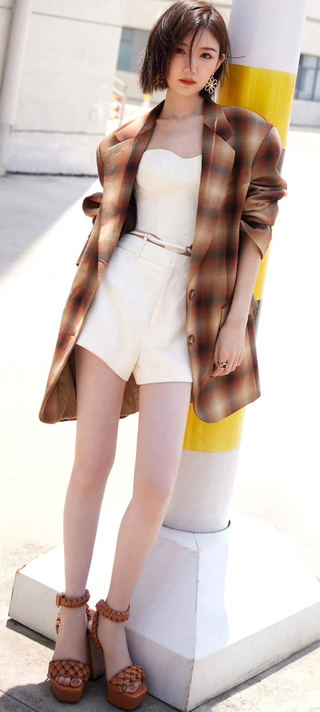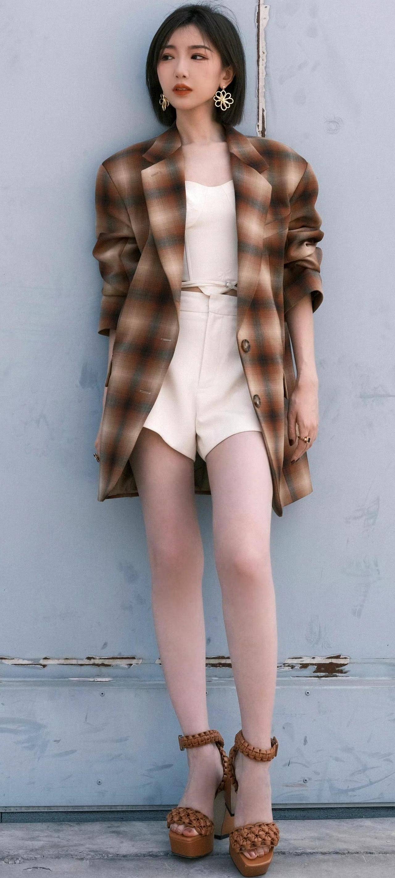#毛晓彤 #时尚穿搭 #格子外套 #短裤